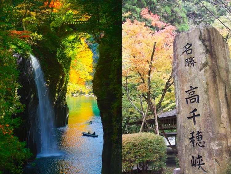 【高千穂峡渓谷漕ぎ】九州の秘境を漕ぎ進み、目の前に滝が流れ落ちる衝撃の瞬間を体感【阿蘇山・草千里】広大な火山草原がどこまでも広がり、活火山の驚異を間近に体感できる【高千穂和牛ランチ】高千穂特選和牛を特別にアレンジした定食。とろけるような日本の味を堪能