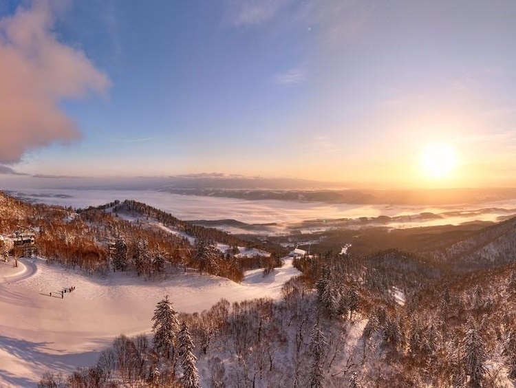 山頂から望むサンライズは、言葉にならない美しさ。富良野は絶景さえも優しい。あなたを癒してくれる絶景を眺めながら、ファーストトラックを滑ることができます。